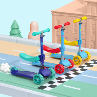 儿童滑板车3轮闪光溜溜车折叠大号划板车男女童喷雾踏板车发光水晶轮星辰皓