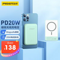 品胜MagSafe磁吸无线充电宝5000mAh毫安(绿色)20W快充苹果12适用iphone13超薄便携PD背夹外接电池