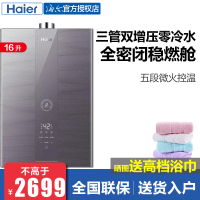 海尔(haier)燃气热水器16升天然气密闭稳燃舱下置直流变频风机富氧蓝焰水气双调恒温精控微火技术ECO节能高抗风FX3
