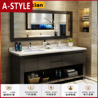 苏宁放心购北欧风格轻奢风双盆实木浴室柜组合套装简约现代洗漱台储物镜柜A-STYLE
