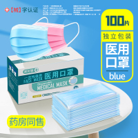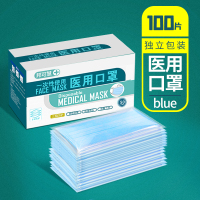 100只医疗一次性使用医用口罩蓝三层含医用熔喷布防飞沫防护口罩夏季成人独立包装细菌过滤率大于95% 薄款医生医护专用口罩