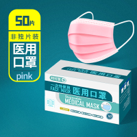 50只粉色口罩医疗一次性使用医用口罩三层含熔喷布防飞沫防护口罩夏季成人独立包装细菌过滤率大于95% 薄款医生医护专用