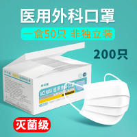 200片白色灭菌型医用外科口罩一次性医疗口罩三层医护医生专用50片包装独立包装细菌过滤率大于95%医用外科口罩50片/盒