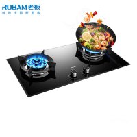 老板然气灶 5.0kW大火力燃气灶具嵌入式双灶钢化玻璃全进风单灶具 液化气 黑色