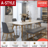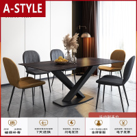 苏宁放心购北欧轻奢岩板餐桌现代简约长方形家用小户型大理石家用餐桌椅组合A-STYLE