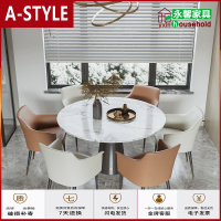 苏宁放心购美式轻奢大理石圆饭桌小户型家用现代简约岩板餐桌椅组合家具定制A-STYLE
