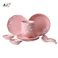 凌天 景德镇日式蝴蝶系列四人食套装小清新陶瓷餐具创意家用碗