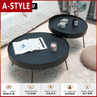 苏宁放心购北欧圆形茶几简约铁艺工业风客厅创意家具黑色沙发茶桌小圆桌A-STYLE