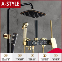苏宁放心购卫浴淋浴花洒套装家用全铜浴室沐浴淋雨增压喷头黑色恒温花洒A-STYLE