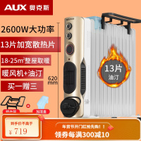 奥克斯取暖器油汀丁暖风机速热烤火炉家用节能省电暖器气片大面积 白+金13片可定时