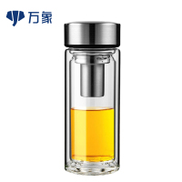 万象双层玻璃杯男士隔热水杯带盖过滤泡茶杯车载便携商务大容量杯