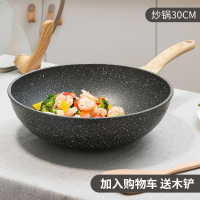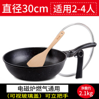 黑色 炊大皇麦饭石不粘锅炒锅煎炒两用家用不沾炒菜锅电磁炉燃气灶通用