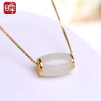印象眸 金镶玉和田玉吊坠 足金镶碧玉/羊脂白玉水滴项链 附送证书