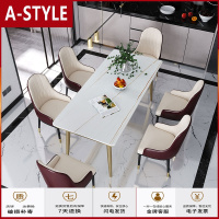苏宁放心购轻奢大理石餐桌椅组合北欧长方形岩板家用饭桌现代简约工业风台面A-STYLE