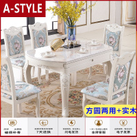 苏宁放心购欧式大理石餐桌椅组合方圆两用家用小户型简欧实木可伸缩折叠饭桌A-STYLE
