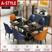 苏宁放心购轻奢大理石餐桌椅组合简约现代家用北欧小户型玻璃长方形吃饭桌子A-STYLE