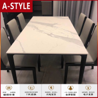 苏宁放心购极简岩板餐桌椅组合现代简约家用小户型北欧轻奢长方型大理石饭桌A-STYLE