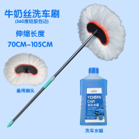 汽车用品专用工具洗车拖把掸子刷子擦车布长杆柄伸缩软毛除尘 牛奶丝短杆1.05米+洗车液+备用头 抖音
