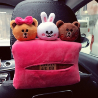 韩国创意汽车椅背遮阳可爱抽纸盒 多功能挂式车用固定车载纸巾盒 嘴唇三公仔玫红纸巾盒 抖音