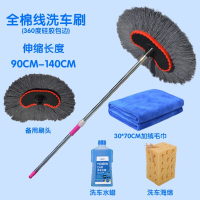 新款洗车拖把套装长柄伸缩软毛刷车刷子专用不伤汽车清洁用品大全工具 三节蓝色伸缩拖把刷套E洗车液 抖音