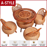 苏宁放心购真藤椅三件套茶几单人靠背椅休闲阳台小桌椅竹藤编滕椅子五件组合A-STYLE家具