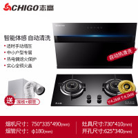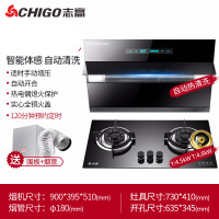Chigo/志高抽油烟机燃气灶套餐家用厨房烟机灶具套装自动清洗特价 智能体感+烟道增压+猛火嵌入式4.2kw双灶
