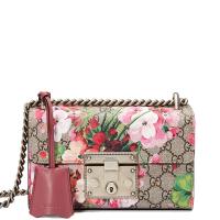 [直营]古驰(GUCCI)PADLOCK 涂层帆布天竺葵印花单肩包斜挎包 女包 硬 搭扣 女包