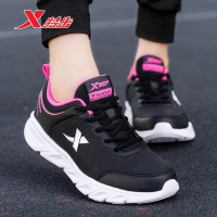 特步女鞋运动鞋2022秋季皮面防水跑鞋黑色轻便透气休闲鞋子跑步鞋