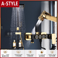 苏宁放心购全铜恒温黑色美式双淋浴花洒金色浴室升降沐浴器雨淋方体花洒套装A-STYLE