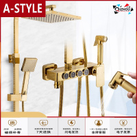 苏宁放心购欧式四档淋浴花洒套装全铜龙头四方金色恒温花洒家用复古黑色方形A-STYLE