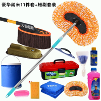 新款洗车刷子工具长柄伸缩纯棉软毛擦车拖把专用拖把洗车套装组合家用 豪华纳米11件套蜡刷套装 抖音
