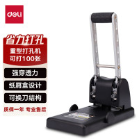 得力0130二孔打孔器 黑色 双孔活页纸张打洞机办公文具 可打100张省力打孔机