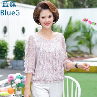 蓝旗中年女装短袖雪纺衫妈妈2021新款夏季时尚短款上衣