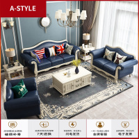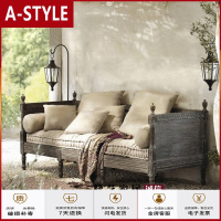 苏宁放心购法式花实木复古做旧客厅布艺家具组合套装美式乡村北欧式沙发床A-STYLE家具