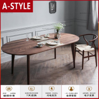 苏宁放心购北欧实木椭圆桌小户型复古轻奢饭桌家用咖啡桌椅组合简约餐厅家具A-STYLE家具