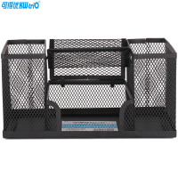 可得优(KW-triO)ZW-04四格金属笔筒 多功能文具座 方形铁网笔筒 铁质笔筒 办公收纳 笔筒/笔袋