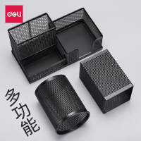 得力(deli)908方形笔筒黑色(单位:个)金属笔筒 网格铁笔筒 收纳笔座 网纹笔插 笔筒/笔袋