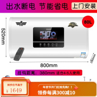 新飞电热水器家用储水式扁桶速热卫生间简易洗澡淋浴50l60L升 80L扁桶大屏出水断电+预约定时 联保+安装