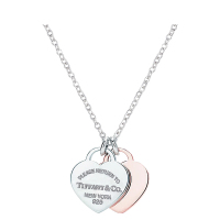 [直营]TIFFANY&CO.蒂芙尼 925银 欧美风格 时尚双心形吊坠项链 女士锁骨链 玫瑰金色 双色链坠 送恋人