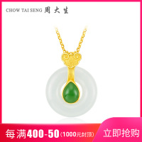 周大生和田玉吊坠女 正品999足金新款平安扣项链金镶玉黄金吊坠黄金饰品 女士珠宝首饰