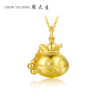 周大生黄金吊坠女足金999蝙蝠钱袋金珠福袋项坠新款正品锁骨挂坠