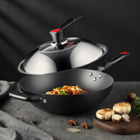 传世炒锅32cm 炊大皇炒锅传世铸铁锅炒锅无涂层生铁锅炒菜锅电磁炉燃气通用32cm