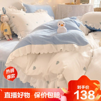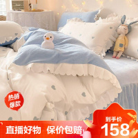 [旗舰直营]ins网红床裙四件套加厚公主风亲肤磨毛被套床单三件套床上用品4件冰星梦