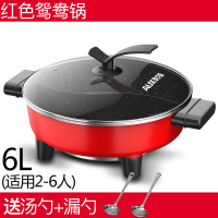 奥克斯鸳鸯电火火锅锅家用多功能宿舍电炒菜炒锅电热煮烧烤一体锅 6L红色鸳鸯锅+大礼包