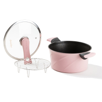 迪迪尼卡韩国didinika网红抖音同款麦饭石24cm汤锅煮锅蒸锅家用焖锅灶具通用不粘锅炖锅粉色(汤锅+锅盖+蒸屉)