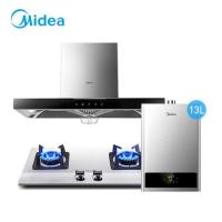 美的抽油烟机燃气灶热水器三件套装顶吸式烟灶热厨房套餐组合 烟机+燃气灶(不锈钢灶)+(13升热水器) 天然气