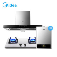 美的抽油烟机燃气灶热水器三件套装顶吸式烟灶热厨房套餐组合 烟机+燃气灶(不锈钢灶)+(12升热水器) 液化气