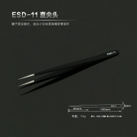 小镊子不锈钢尖弯头燕窝挑毛工具古达长摄子钳塑料手机电子维修 直尖头ESD-11(货号1311)