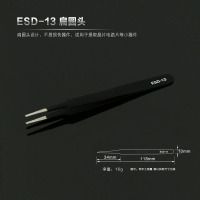 小镊子不锈钢尖弯头燕窝挑毛工具古达长摄子钳塑料手机电子维修 扁圆头ESD-13(货号1313)