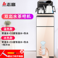 志高台式小型全自动上水智能遥控款家用饮水机下置水桶冷热茶吧机 拉丝金靠背款+双出水+大显屏+遥 冰热